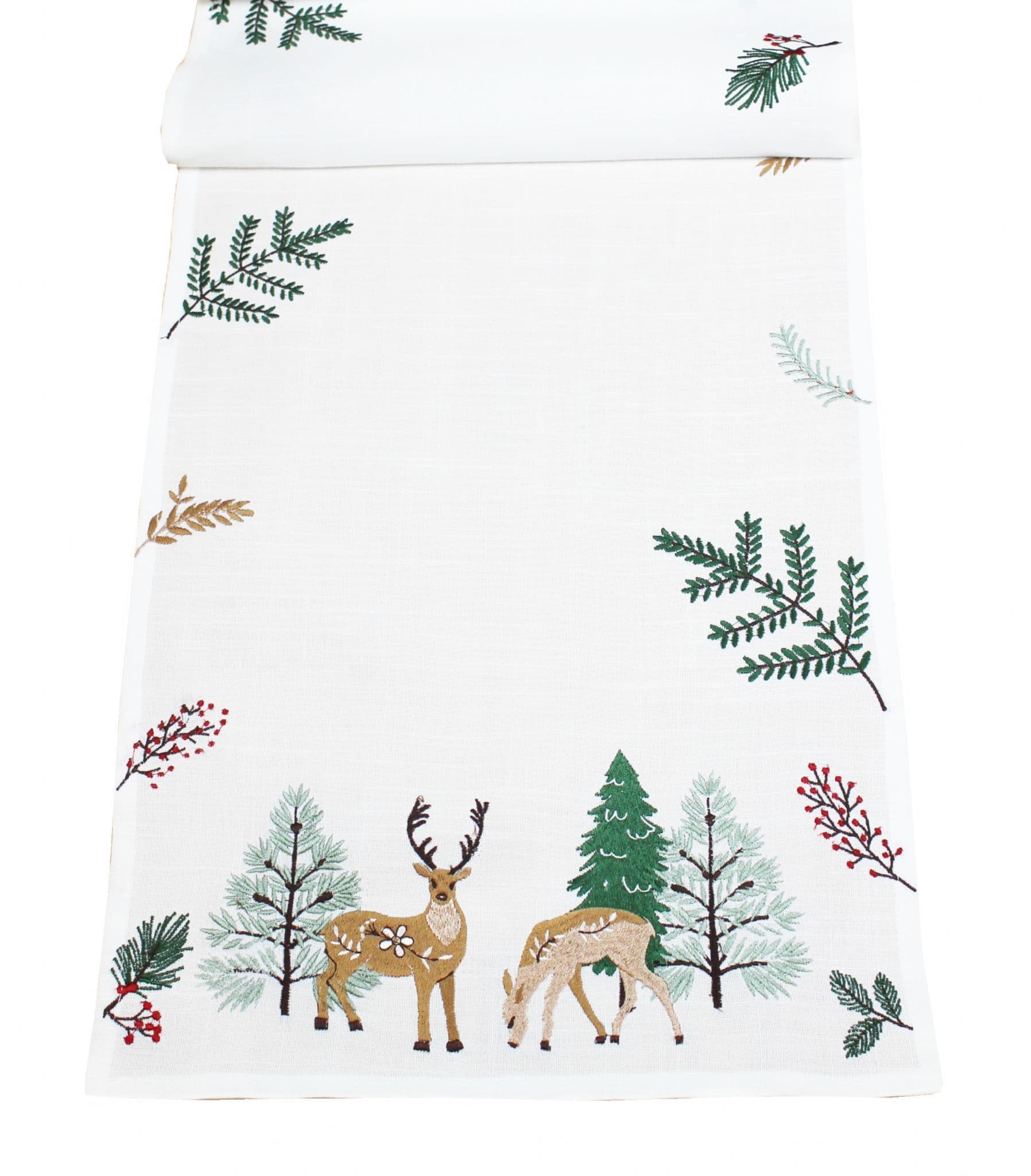Arwell Christmas Stag & Forest Embroidered Table Runner 14" x 75"