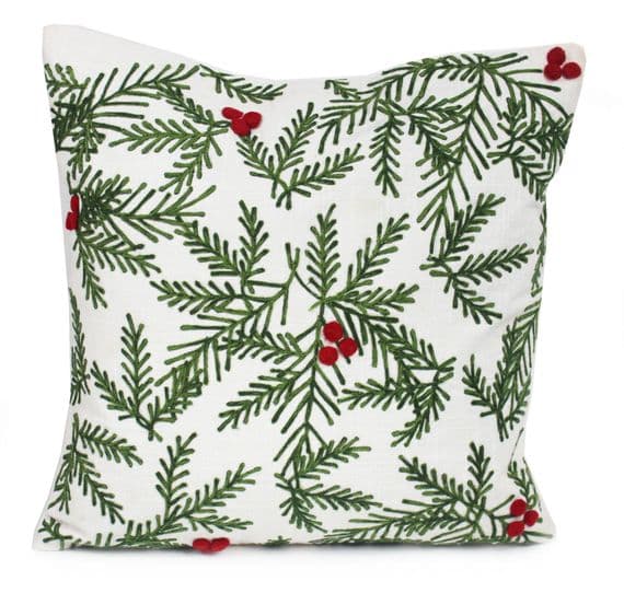 Berry Bright Christmas Embroidered Firs and Bobble Berries Cushion - 45cm x 45cm