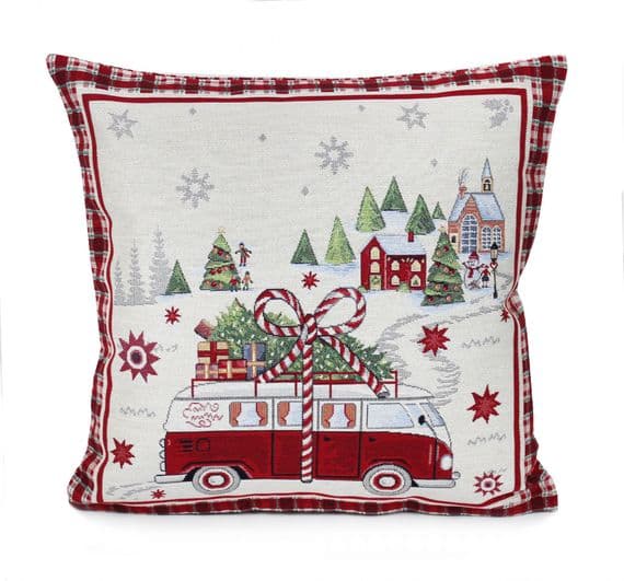 Christmas Camper Van Tapestry Style Cushion - 45cm x 45cm