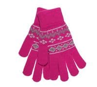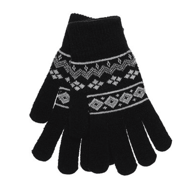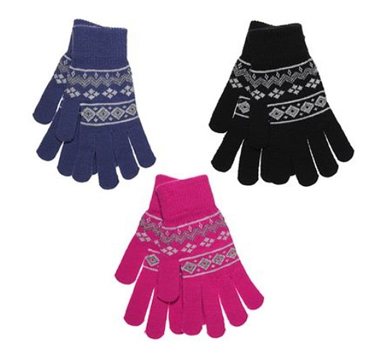Ladies Fairisle Magic Winter Gloves – Warm Knit Gloves - Black, Blue or Pink