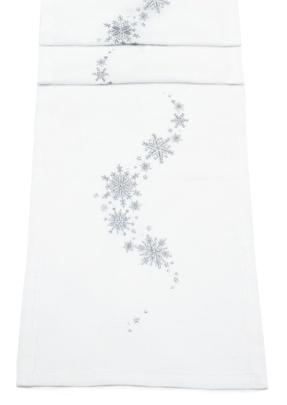 Snow Flowers Christmas Snowflake Embroidered Table Runner - 14" x 75"